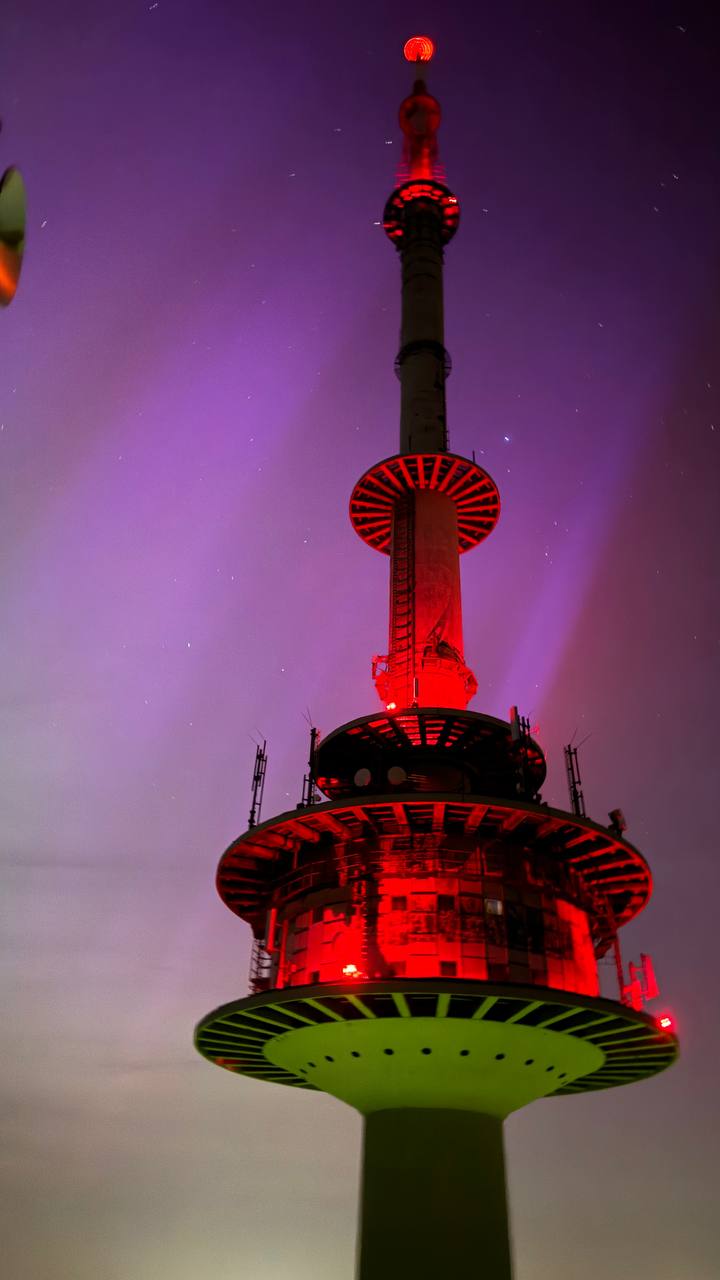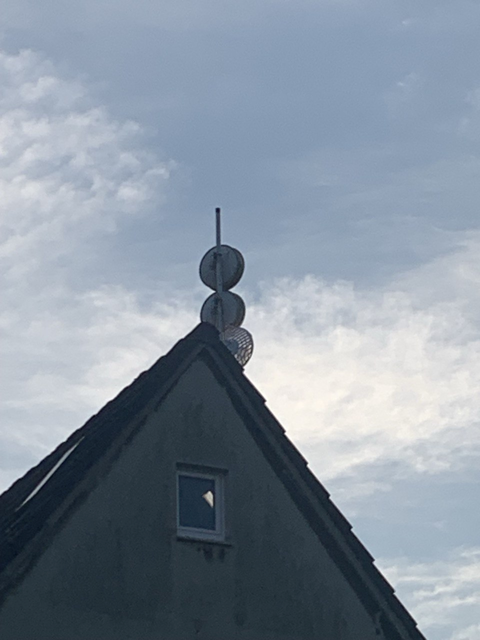Ebenso wurde vor kurzem die HF-Anbindung zum Turm aufgerüstet. Für die 3km Strecke zum Uplink kommt jetzt ein UBNT AirFiber 60LR zum Einsatz. Nach mehreren Tests mobilerweise konnte die Machbarkeit der 60 GHz-Strecke mit dem Equipment festgestellt werden. Bei den vorher geplanten und auch aufgebauten GigaBeam war das leider nicht möglich. Ganz unten ist der 60 GHz Spiegel zu erkennen. Die Strecke läuft stabil mit Brutto 2 Gbit, auch bei schlechten Wetter (Regen)