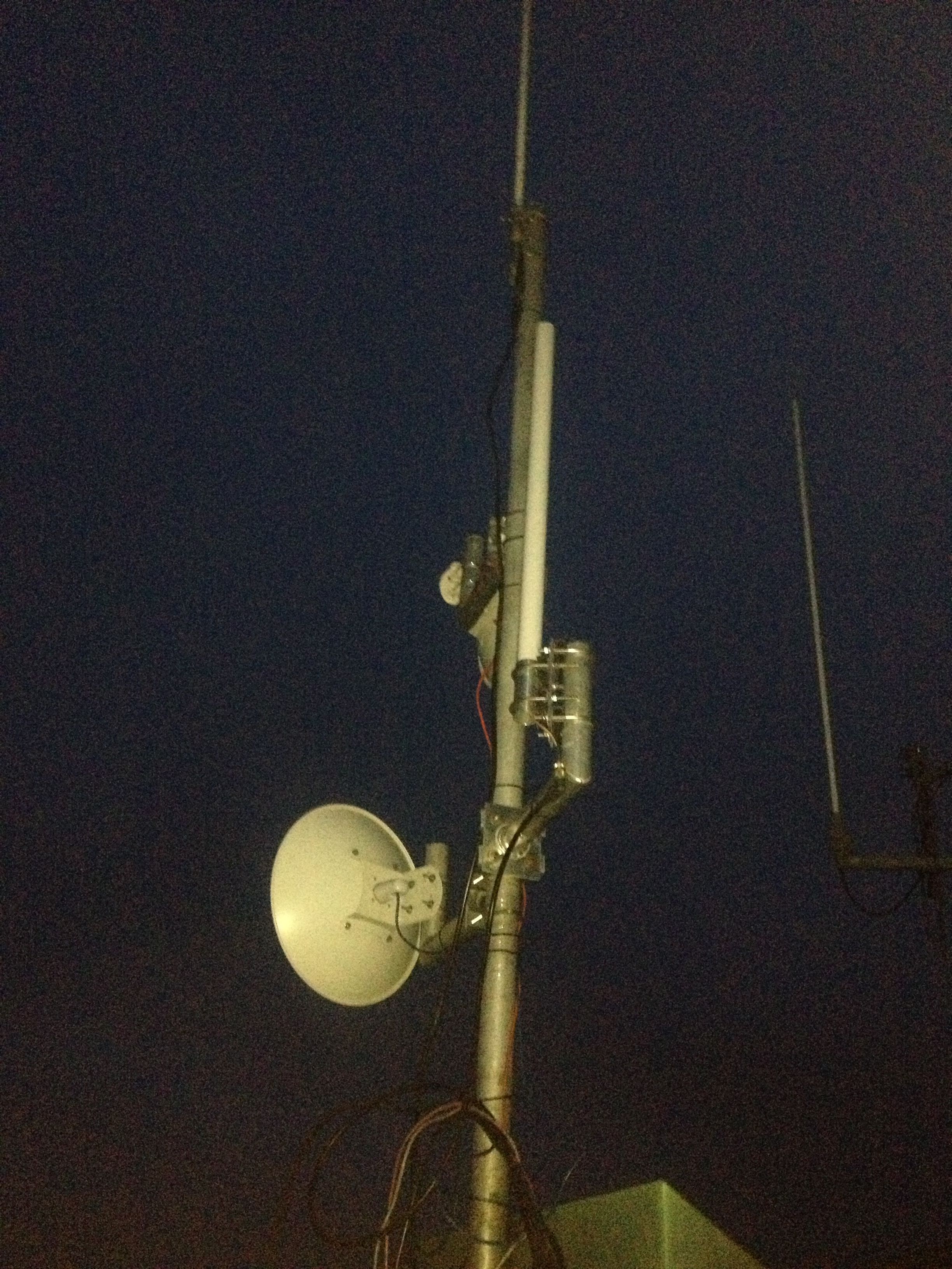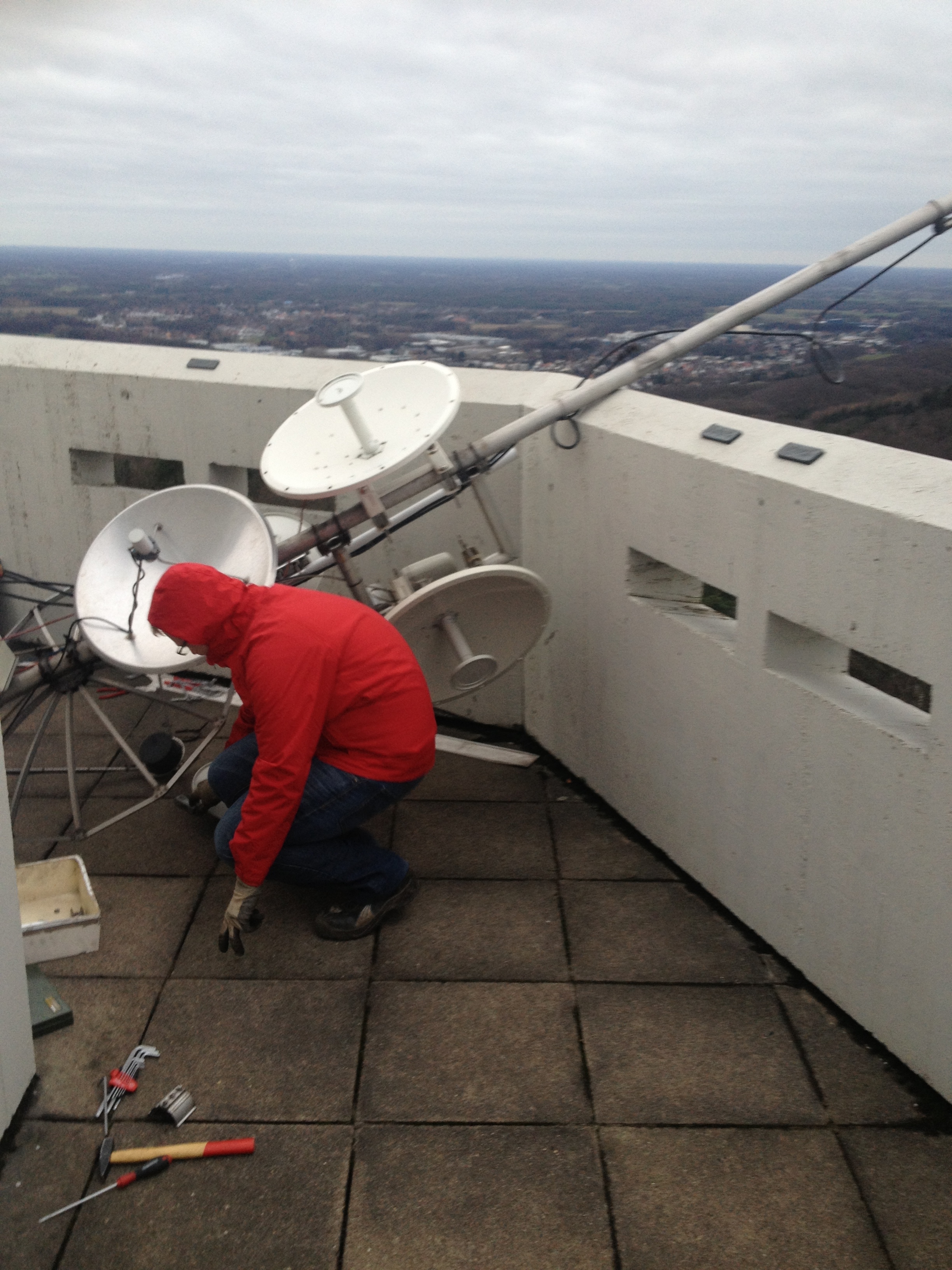 Aufgebaut wurden erst einmal nur die Hamnet-Strecken nach Osnabrück und Süntel (hier allerdings mit kleineren Antennen) bzw. die Funkruf / APRS-Antenne. Alle anderen Antennen sind erst einmal demontiert. Bei dem Spiegel nach Waltrop müssen diverse Restaurationen vorgenommen werden, hier hat der Zahn der Zeit dem Material zugesetzt und kann so nicht wieder aufgebaut werden. Die Antenne nach Münster hat leider ein paar Defekte davon getragen und konnte noch nicht ersetzt werden.