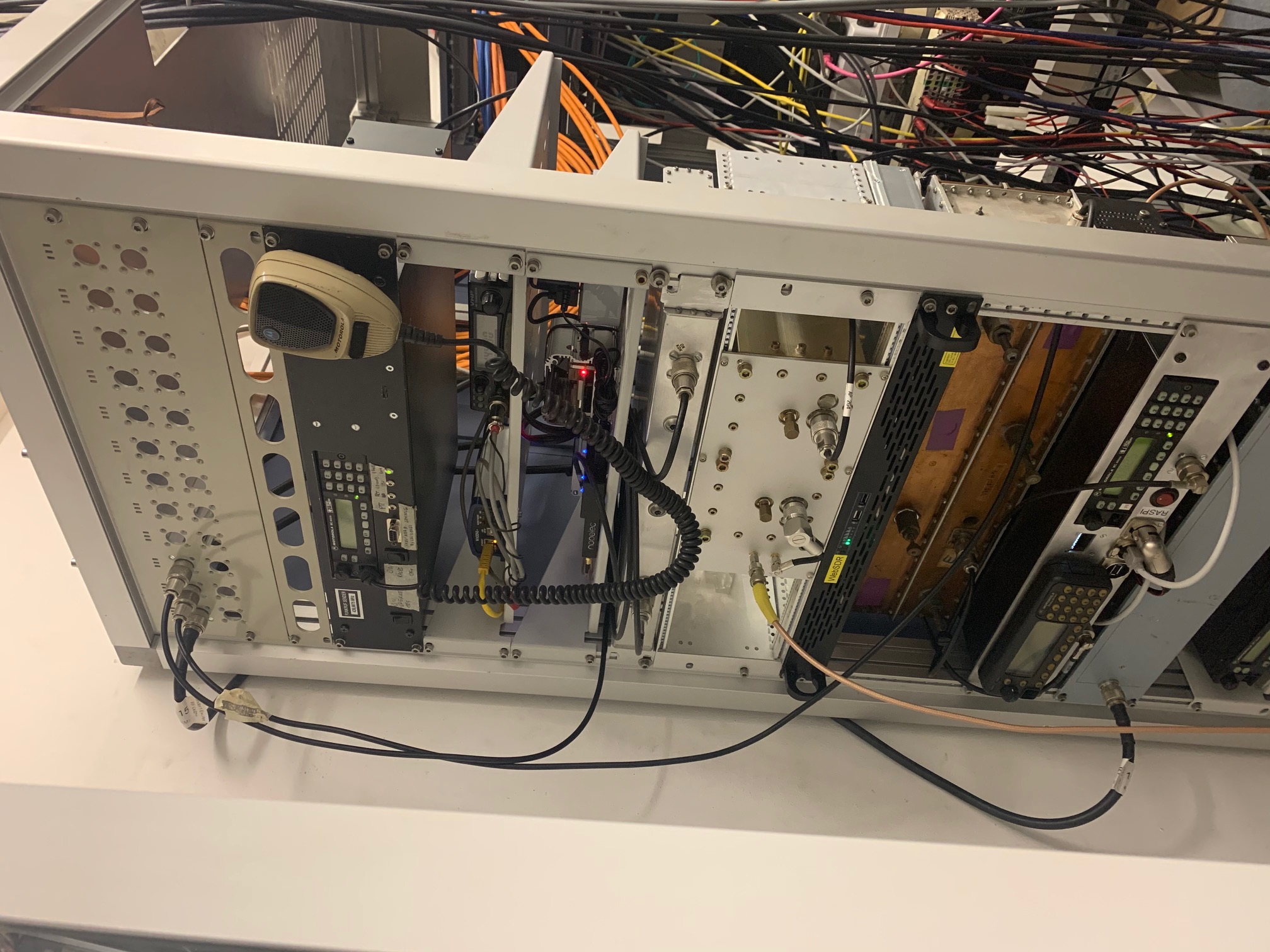 aktuell hat das 70cm Analog-Relais zeitweise Probleme im Empfangszweig, bei schwachen Signalen trat ein Prasseln auf. Ebenso schwächelt der auch parallel zum FM-Empfänger laufende LoRa-APRS auf der 433.750. Bei einem Besuch vor Ort wurden diverse Faktoren im Ausschlussverfahren geprüft (Netzteil, andere Sender vor Ort, Hamnet-Euqipment, 230V Versorgung,etc). Final gab es dort aber keine Änderung am Problem, egal welche Technik deaktiviert wurde. Besserung brachte dort das Auftrennen des Sende- und Empfangszweiges auf 2 Antennen. Für die SDR-Empfänger vor Ort haben wir neben einen 70cm Bandpass auch ein Notch-Filter auf 438/439 MHz im Einsatz. Da die Rundstrahl-Antennen nur mit rund -20dB entkoppeln, ist diese Filterung dort notwendig. Damit konnte der Empfänger des Analog-Relais erst einmal betrieben werden, wenn auch mit Abstrichen in der Empfindlichkeit. Es wurde dort die Huber-Suhner Weiche als Fehler vermutet.