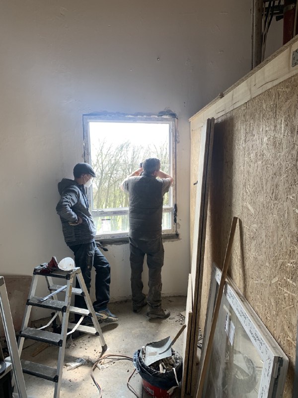 Am Sonntag war das Wetter bestens um die Antennen zu tauschen; hier der Blick über der alten Antenne Richtung Hamm, wenn auch etwas diesig: